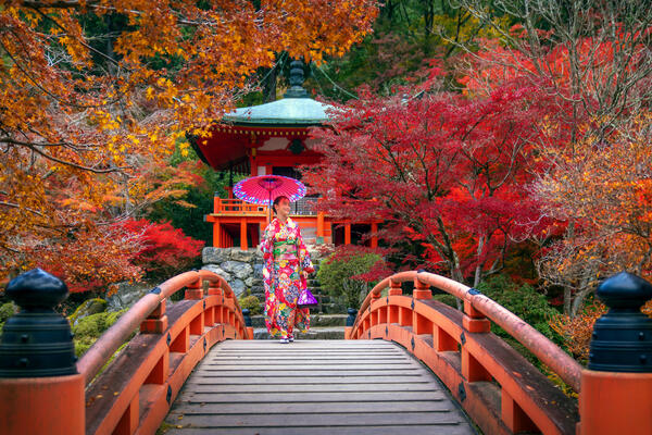 The changing seasons are revered in the crunch of crimson leaves underfoot, the soft snowfall blanketing temple gardens, and the watercolour-like unfurling of the cherry blossoms. These seasonal shifts shape not just the scenery, but the very spirit of Japan. Autumn in Kyoto stuns with striking fiery hues when we visit the Kinkaku-Ji Temple.