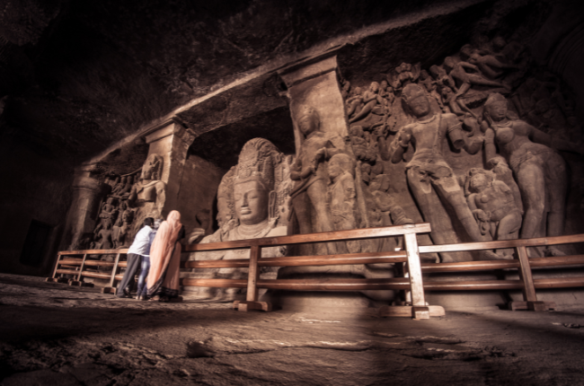 The Elephanta Caves are a series of ancient rock-cut caves located on Elephanta Island, in Mumbai harbour. The caves, renowned for their stunning rock-cut sculptures and ancient architecture, even hold prestigious UNESCO World Heritage Site status.